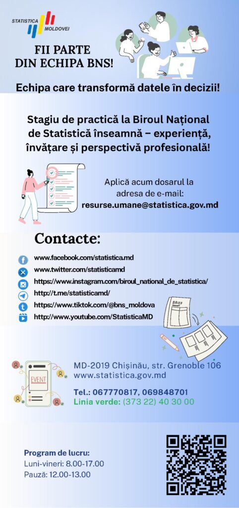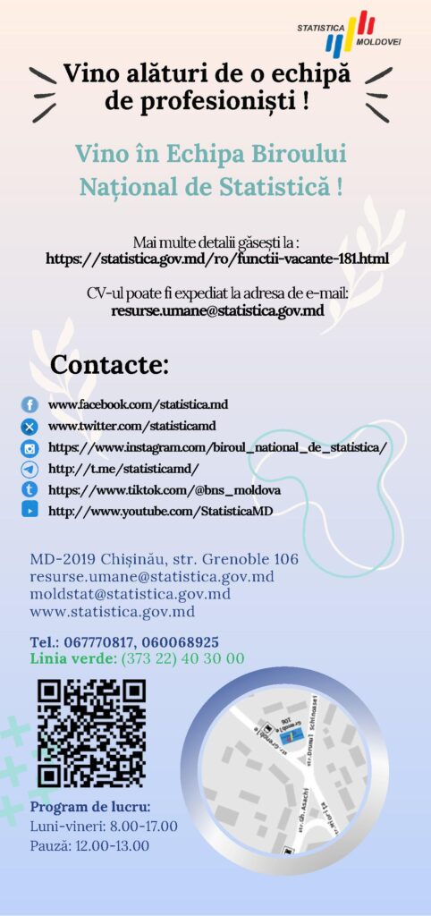 Info și detalii la adresa https://statistica.gov.md/ro/functii-vacante-181.html